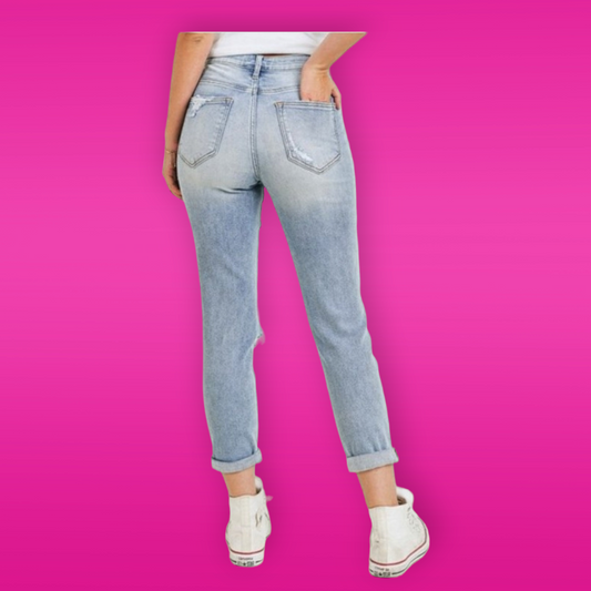 Distressed Roll Up Cuff Relaxed Fit Skinny