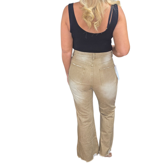 90s Distressed High Rise Tan Flare