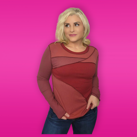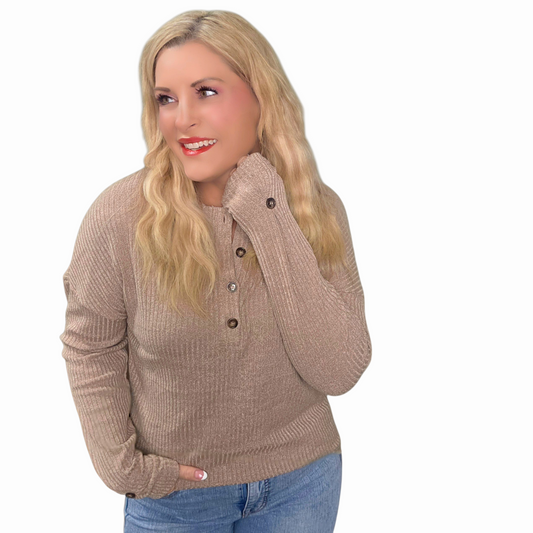 Oatmeal Lace Up Crochet Open Back Ribbed Long Sleeve Top