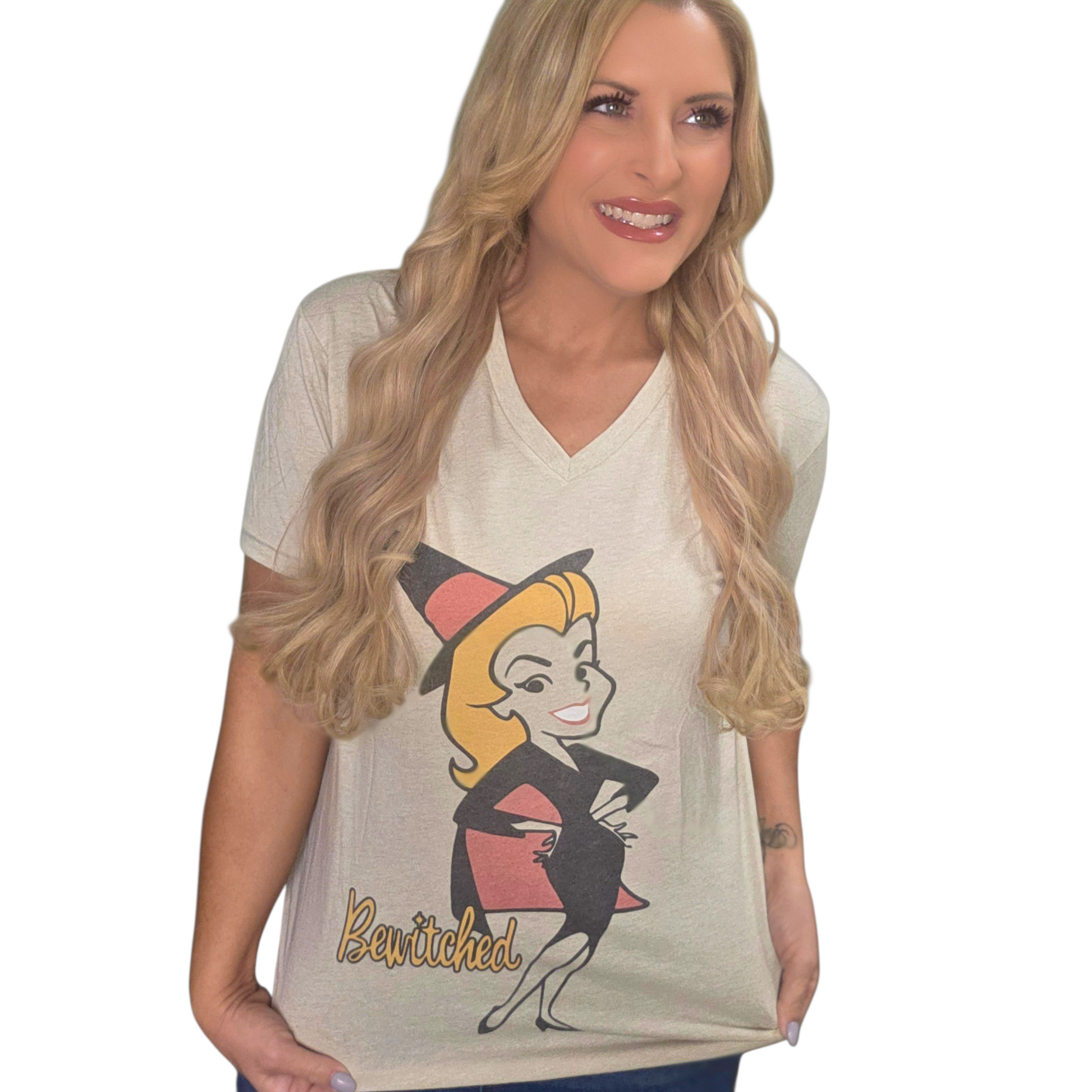 Embrace Bewitching Charm with Our Exclusive V-Neck Tee! Featuring the Iconic Cartoon Character from Bewitched, this Tee Casts a Spell of Nostalgia and Whimsy. Crafted for Comfort and Style, It's a Must-Have for Fans of Classic TV Magic. Grab Yours and Relive the Magic!