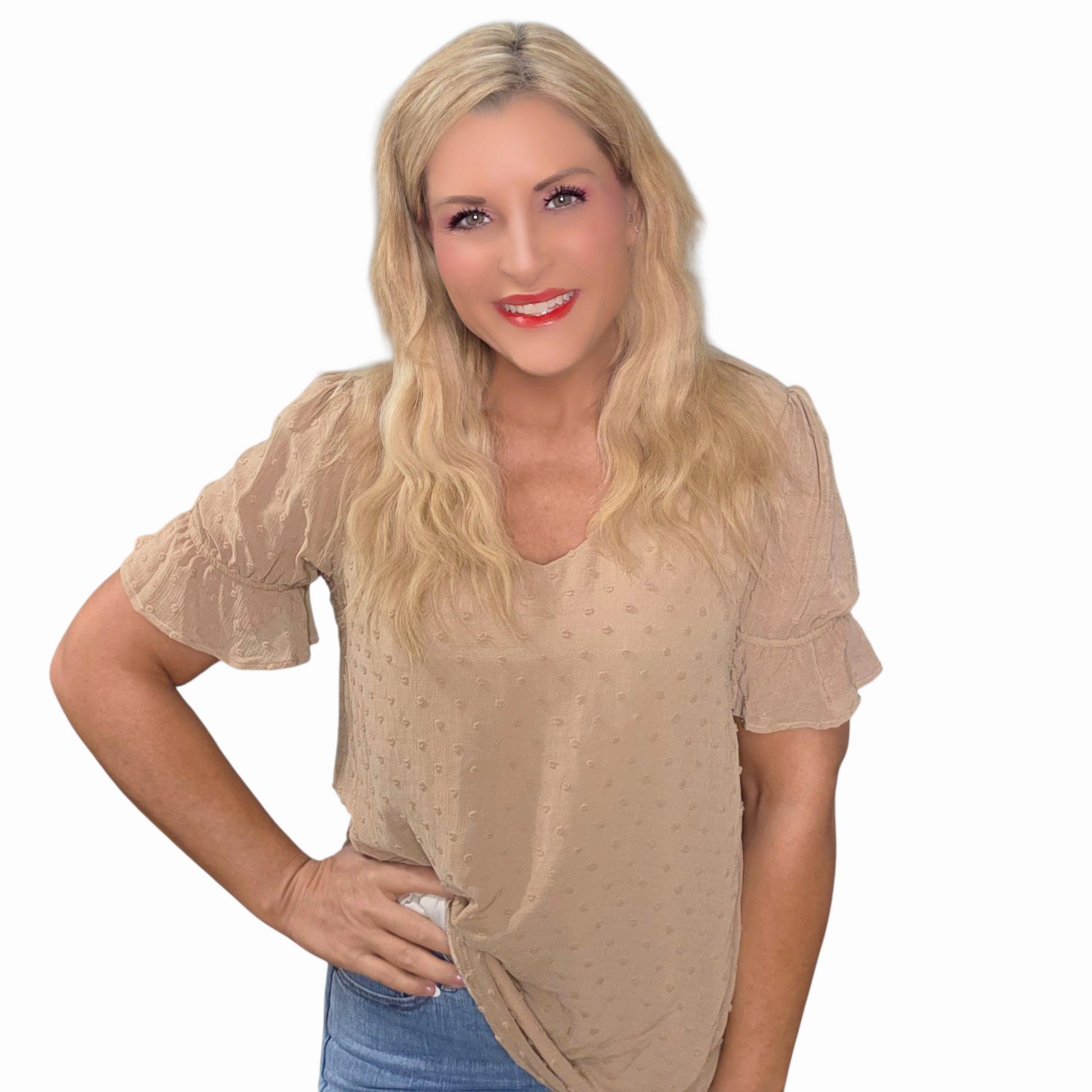 We love the boho vibes of this vintage dye gauze midi dress. She has a collared neckline, button front, and ruffle hem. We love this one with a belt and paired with some ankle booties!